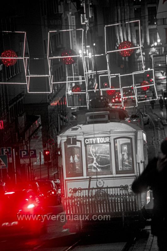 Mots clés : illumination noir-blanc-rouge tramway transport urbanité