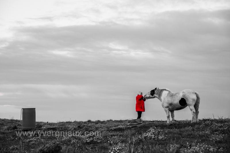 Mots clés : animal cheval littoral nature noir-blanc-rouge paysage prairie