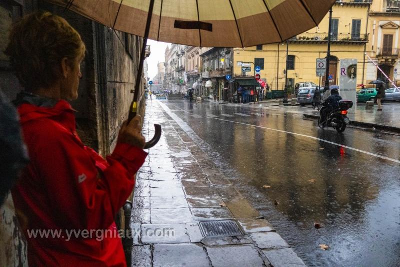 Palerme (Sicile) 23/10/2018 : Scène de rue sous la pluie