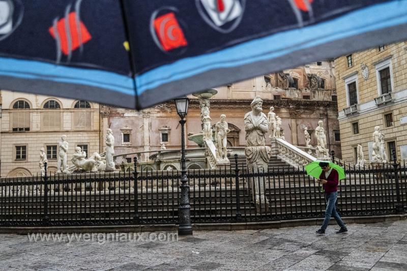 Palerme (Sicile) 23/10/2018 : Scène de rue sous la pluie