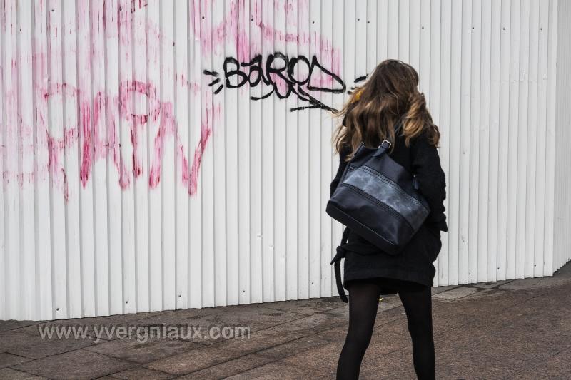 Mots clés : empreinte femme graffiti piéton scène de rue urbanité ville