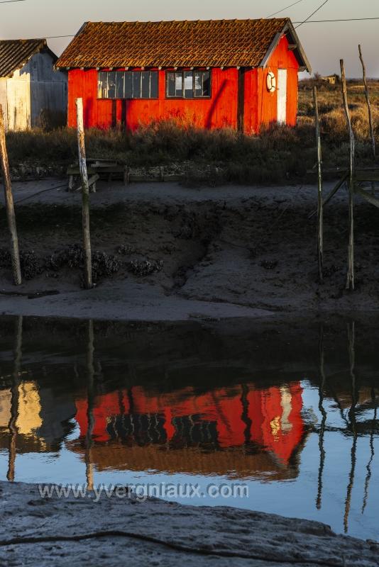 La Temblade (Charente Maritime) 14/02/2019 : Pêcheries et maison en bois le long du canal