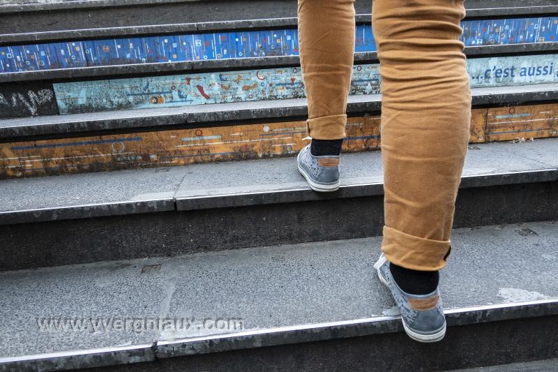 paris (75) 12/05/2019 : Femme montant un escalier dans le métro