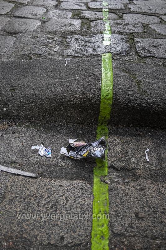 Nantes (44) 06/08/2019 : Bande verte qui balise le circuit artistique dans la ville