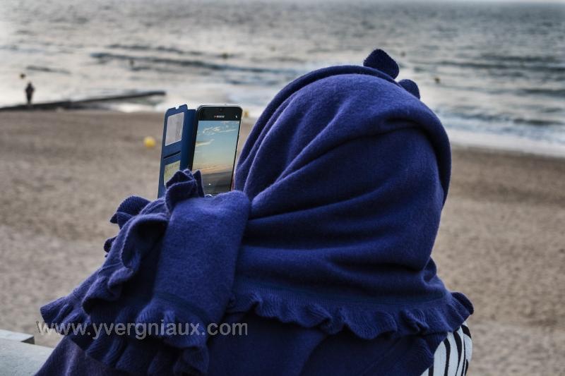 Mots clés : couché de soleil fin de saison foulard littoral mer paysage photographe plage smartphone