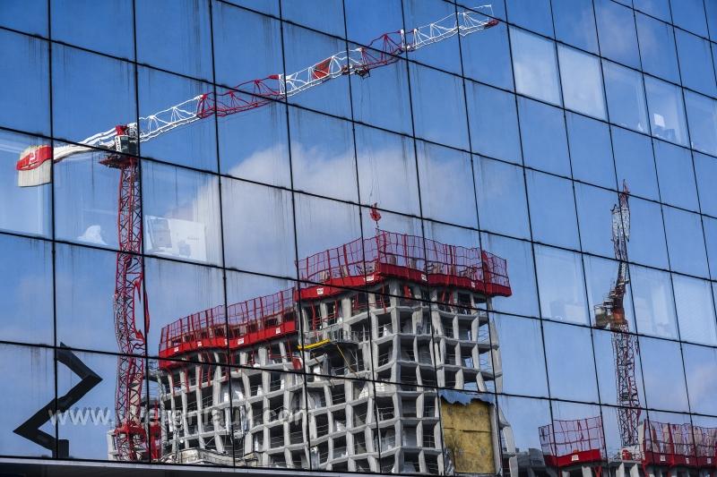 Mots clés : chantier grue hôtel immeuble reflet rue travaux urbanité ville
