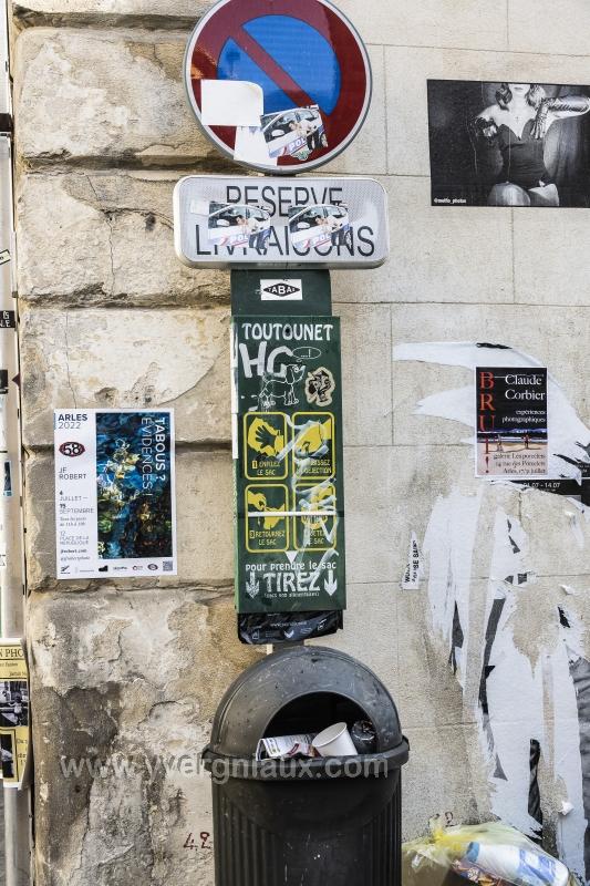 Arles (13) 30/07/2022 : mobilier urbain couvert de graffitis.