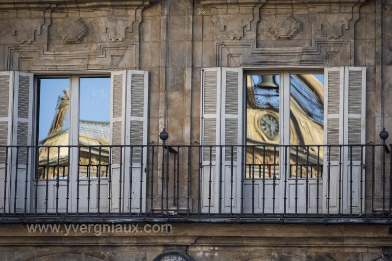 Salamanque (Espagne) 22/09/2022 : Reflet de l'horloge