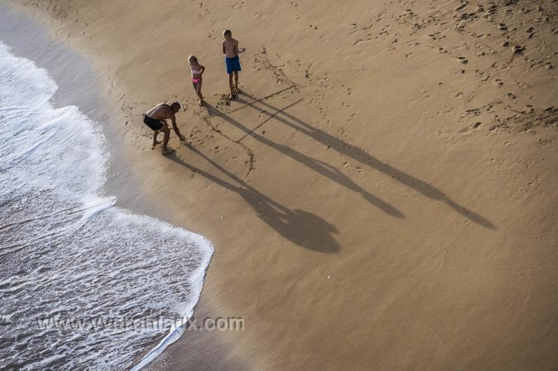 Porches (Algarve, Portugal) 08/10/2022 : Un père et ses enfants dessinent sur le sable