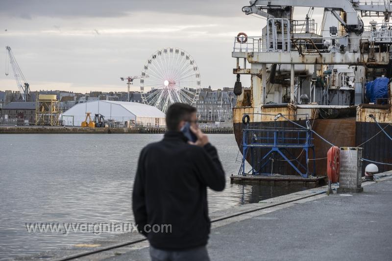 Saint-Malo (35) 12/07/2023 :Le chalutier de haute mer, bateau usine dela Compagnie des Pêche, en cours de maintenance dans le port de Saint-Malo.