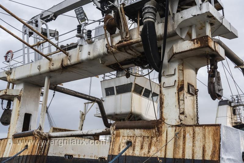 Saint-Malo (35) 12/07/2023 :Le chalutier de haute mer, bateau usine dela Compagnie des Pêche, en cours de maintenance dans le port de Saint-Malo.