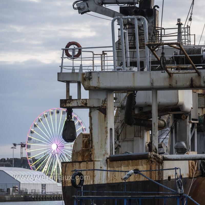 Saint-Malo (35) 12/07/2023 :Le chalutier de haute mer, bateau usine dela Compagnie des Pêche, en cours de maintenance dans le port de Saint-Malo.
