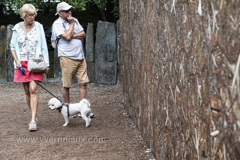 La Gacilly (56) 19/07/2023 : Visiteur devant l'oeuvre OVER de Cassio Vasconcellos