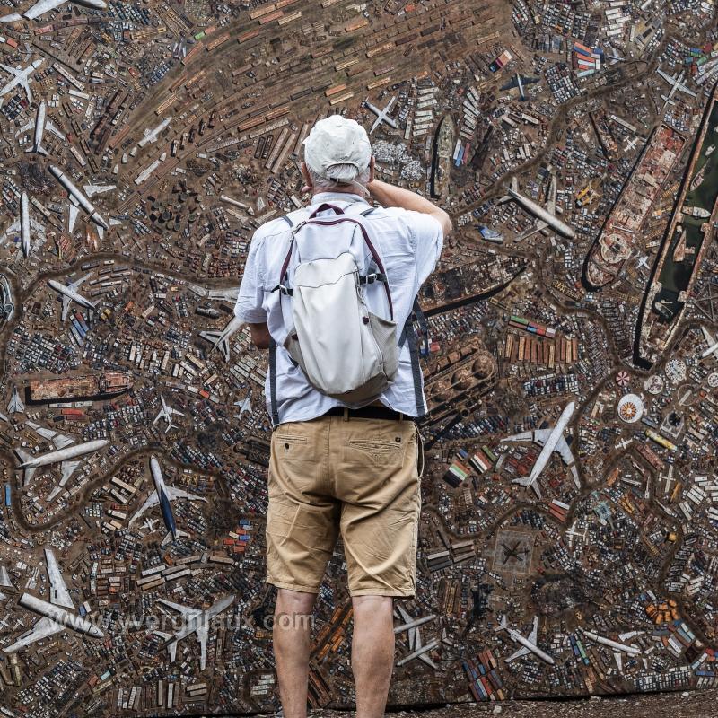 La Gacilly (56) 19/07/2023 : Visiteur devant l'oeuvre OVER de Cassio Vasconcellos