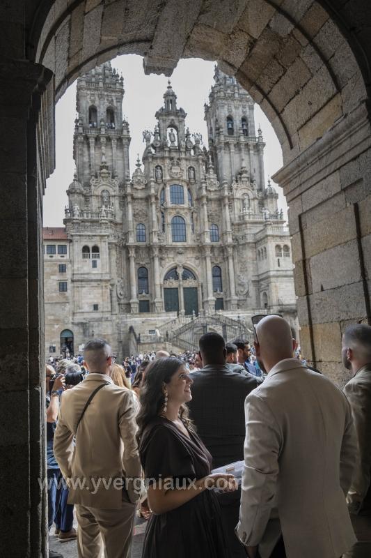 Saint-Jacques-de-Compostelle (Espagne) 06/09/2025 : arrivée des pellerins place de la cathédrale