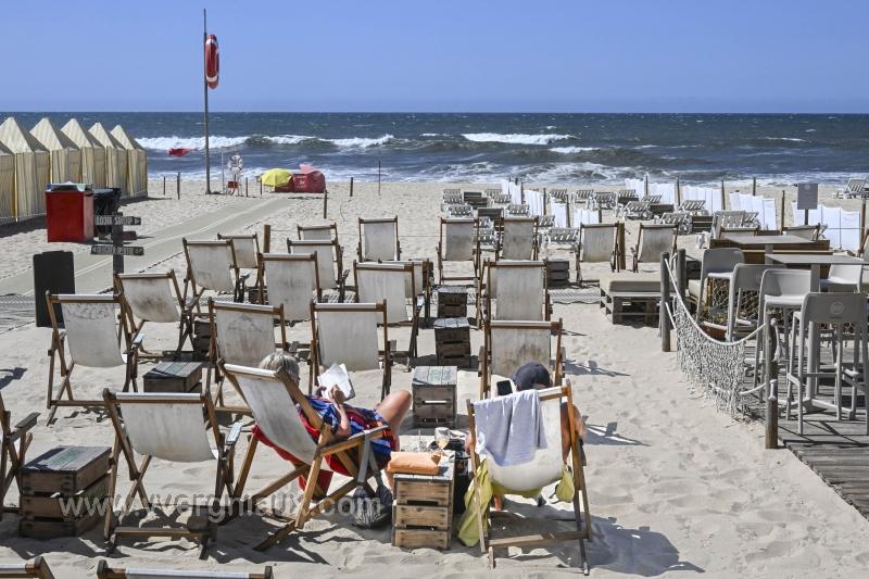 Mots clés : cabine de plage hors saison littoral mer paysage plage sable terrasse