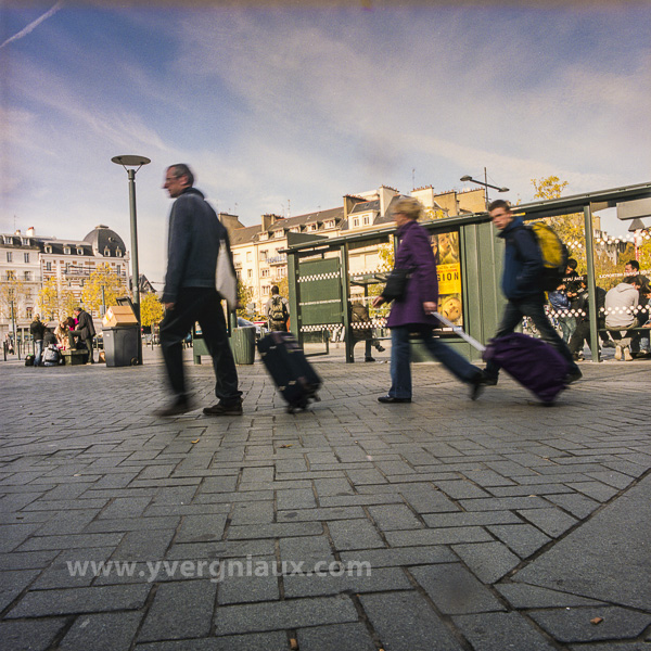 Photo r?alis?e sur tr?pied ? la hauteur d'un petit chien. Place de la gare