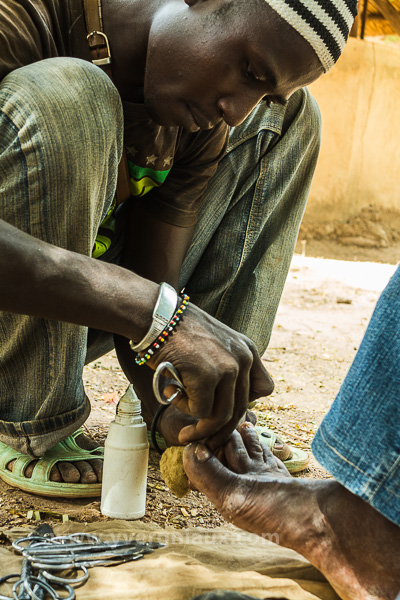 Ouagadougou, (Burkina Faso) mars 2014 : Sc?ne de march?. Entretien des ongles de pied.