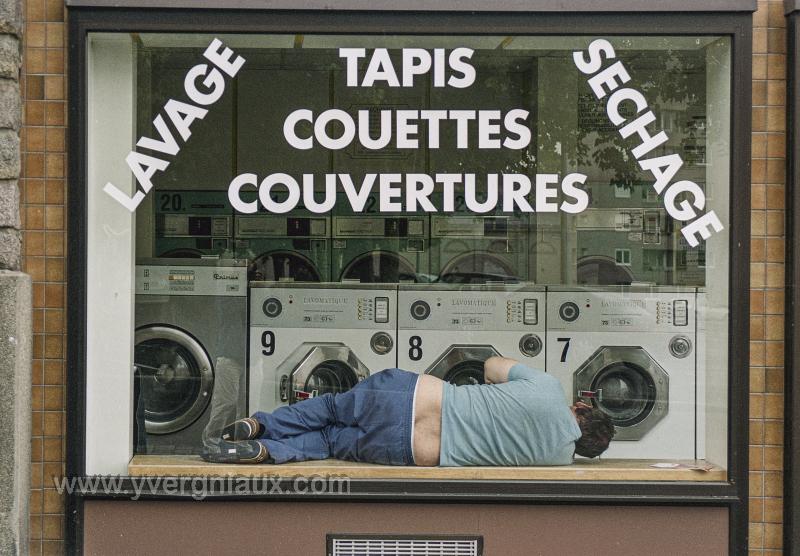 Mots clés : homme laverie sieste