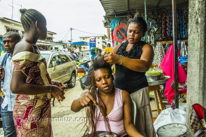 Libreville (Gabon) juin 2014 : Salon de coiffure sur le trottoire