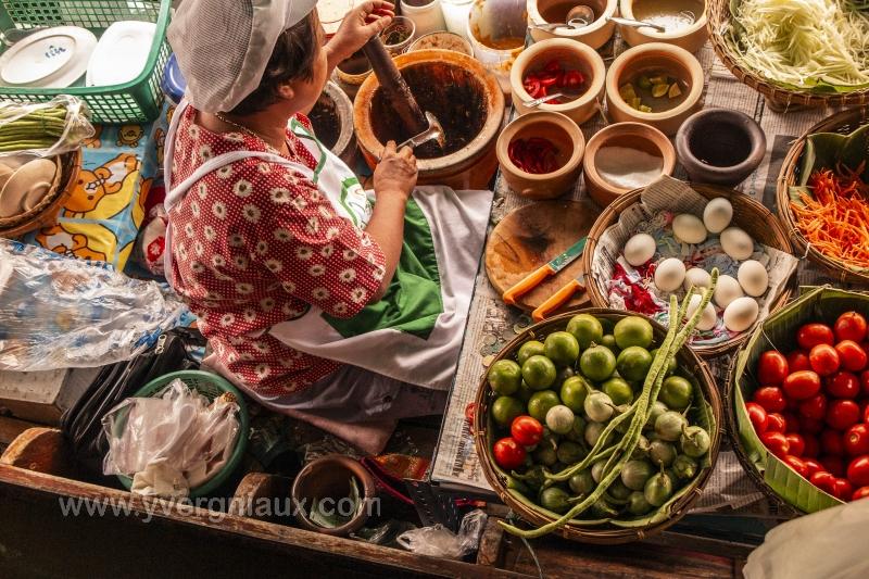 Bankok (Thailand) 27/04/2015 : Restaurant sur un canal. La cuisine est faite dans de petit bateaux amarrés à un ponton.