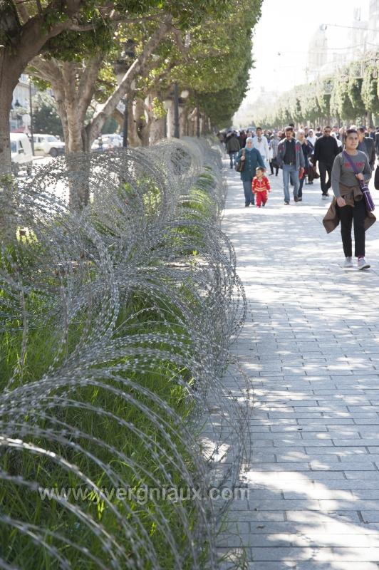 Tunis 07/04/2012 : Ancienne place du 7 novembre, rebaptis?e apr?s la r?volution. dispositif de protection autour du minist?re de l'int?rieur.