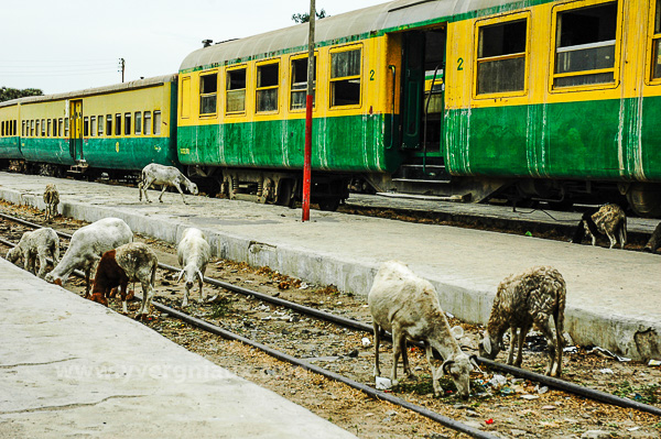 Dakar (S?n?gal) avril 2007 : Vieux trains et moutons sur les voies.