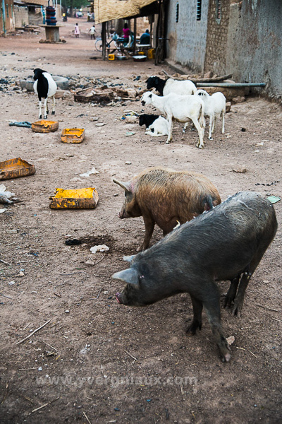 Boromo (Burkina Faso) mars 2014 : Cochons qui vivent dans la rue.