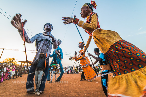 Boromo (Burkina Faso) mars 2014 : Spectacle de rue avec les marionnettes g?antes.