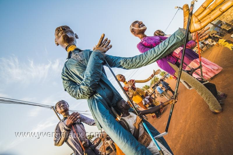Boromo (Burkina Faso) mars 2014 : Spectacle de rue avec les marionnettes g?antes.