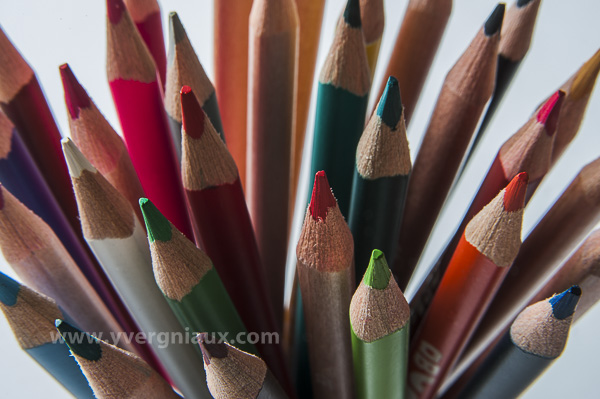 Composition avec des crayons de couleur. Utilisation d'un objectif macro.