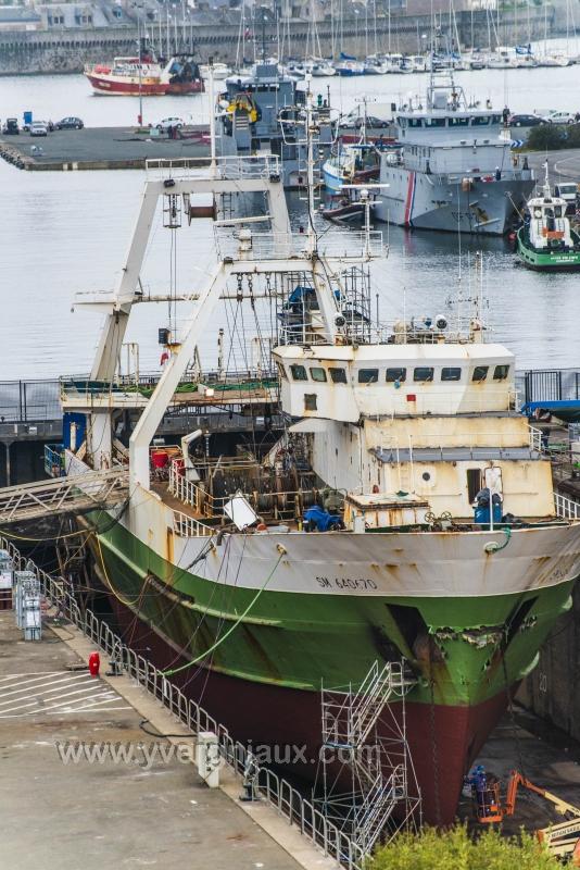 Concarneau (29) 26/10/2015 : Le chalutier "La grande hermine" de Saint-Malo dans les chantier Piriou.