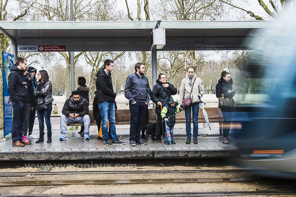 Mots clés : attente pluie sc?ne de rue tramway transport
