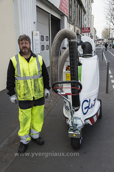 Bordeaux (33) 21/02/2017 : Portrait d'un employ? de la ville avec son "mouton" engin de nettoyage.