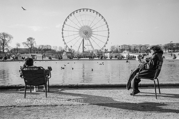 Paris (75) 2001 : Jardin des Tuillerie avec une vue sur la Grande Roue, place de la Concorde.