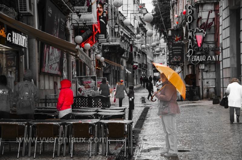 Mots clés : noir-blanc-rouge piéton pluie rue urbanité