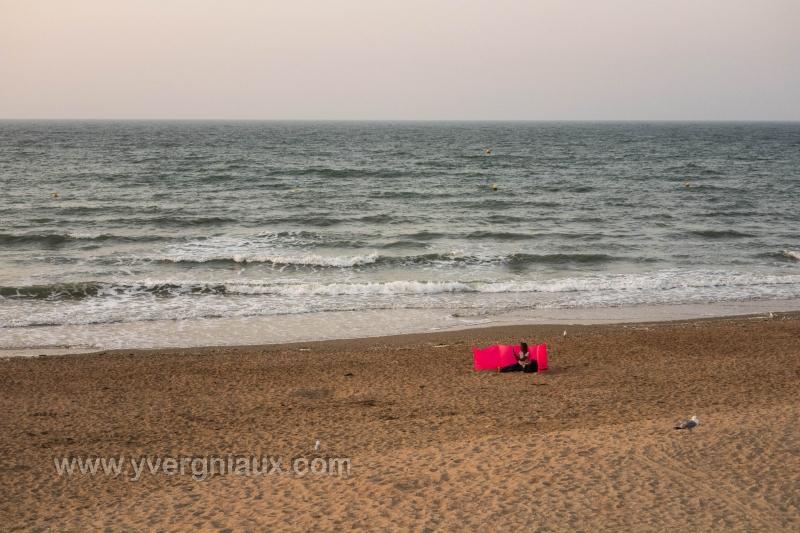 Mots clés : couché de soleil hors saison littoral mer paravent paysage plage sable