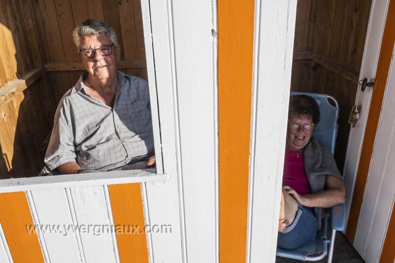 Houlgate (14) 30/08/2022 : Fin d'été. Couple de retraités dans une cabines de plage
