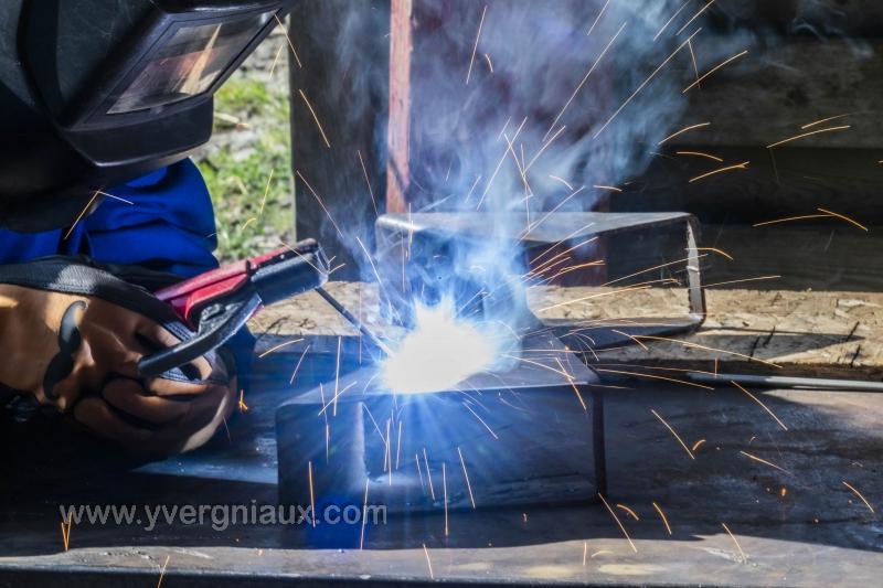 Lamballe 11/04/2025 : l'artiste sculpteur sur métal, Bruno Pansart dans son atelier au haras de Lamballe