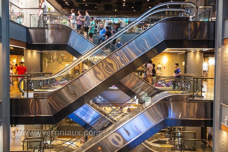 Mots clés : centre commercial commerce escalator