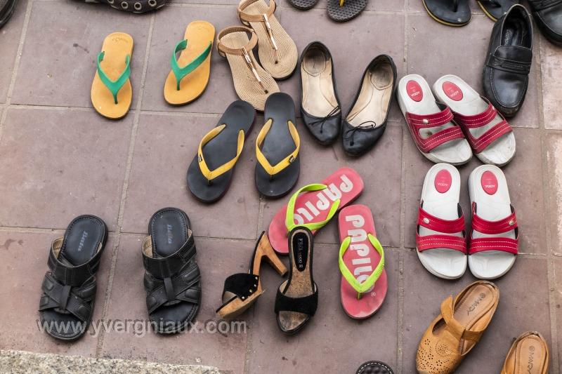 Ayutthaya Thaïland 15/04/2015 : rangement des chaussure des visiteurs pendant la visite d'un temple