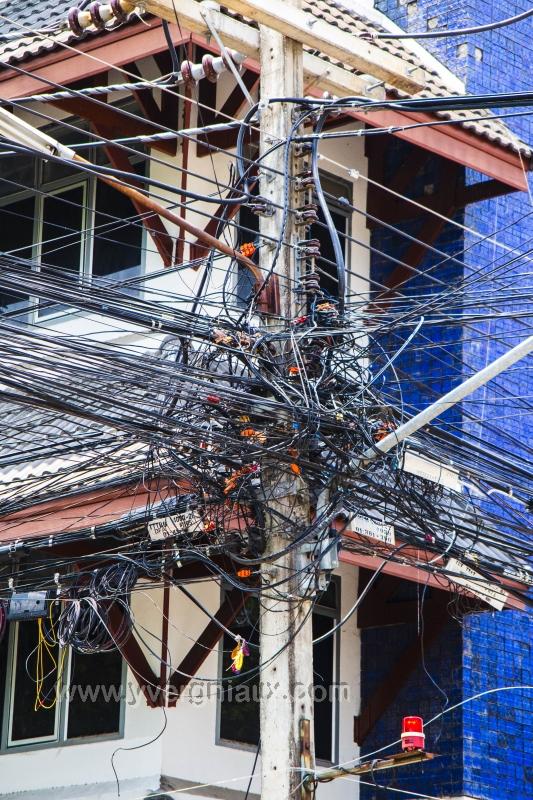 Chiang Mai (Thailand) 23/04/2015 : Poteau et fils électrique.