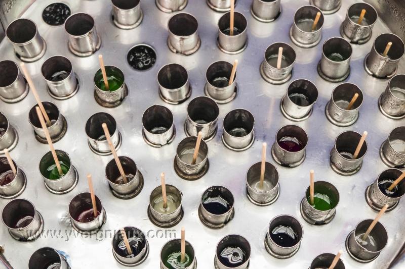 Bankok (Thailand) 27/04/2015 : Marché du dimanche près du restaurant flottant. Fabrication de glaces artisanales
